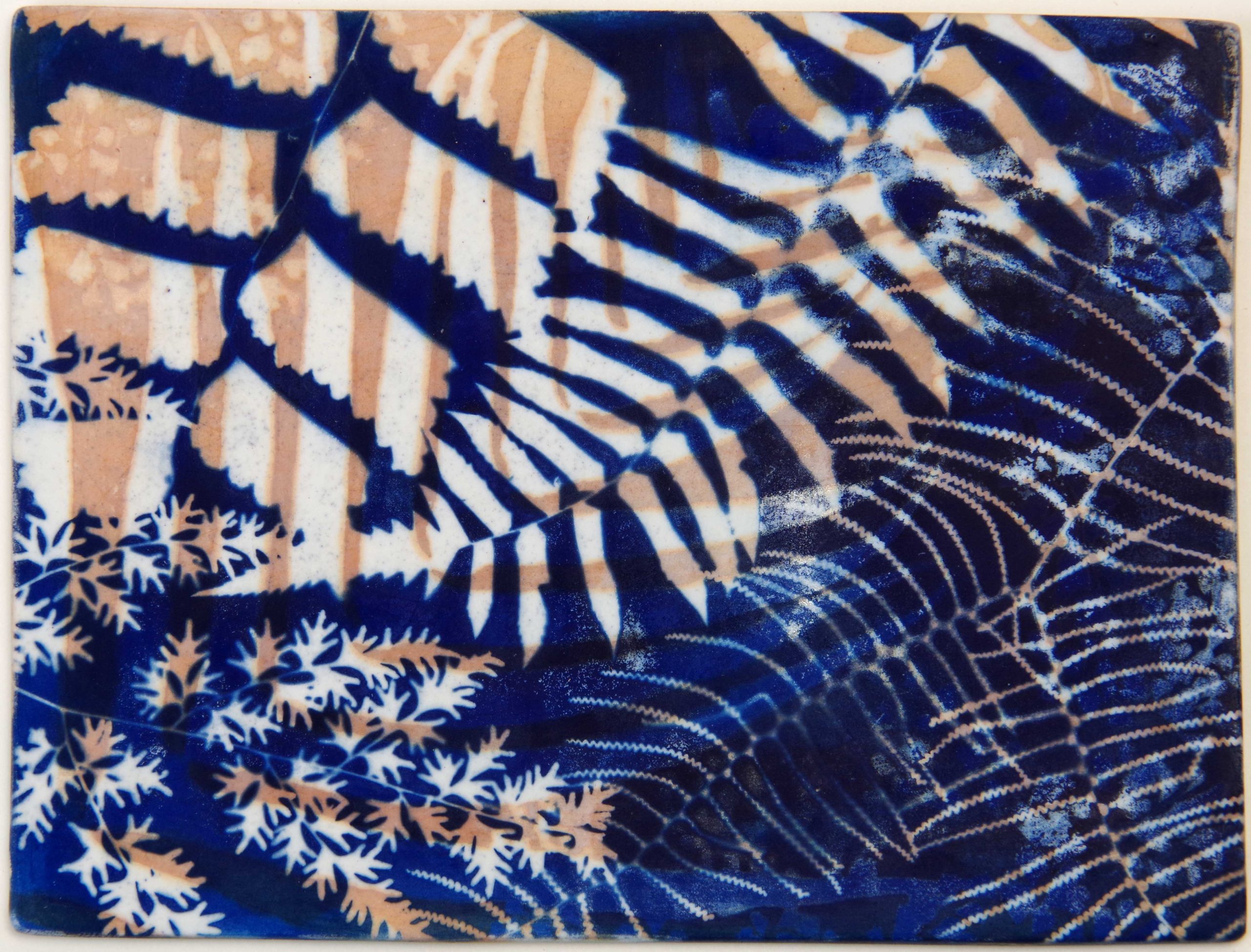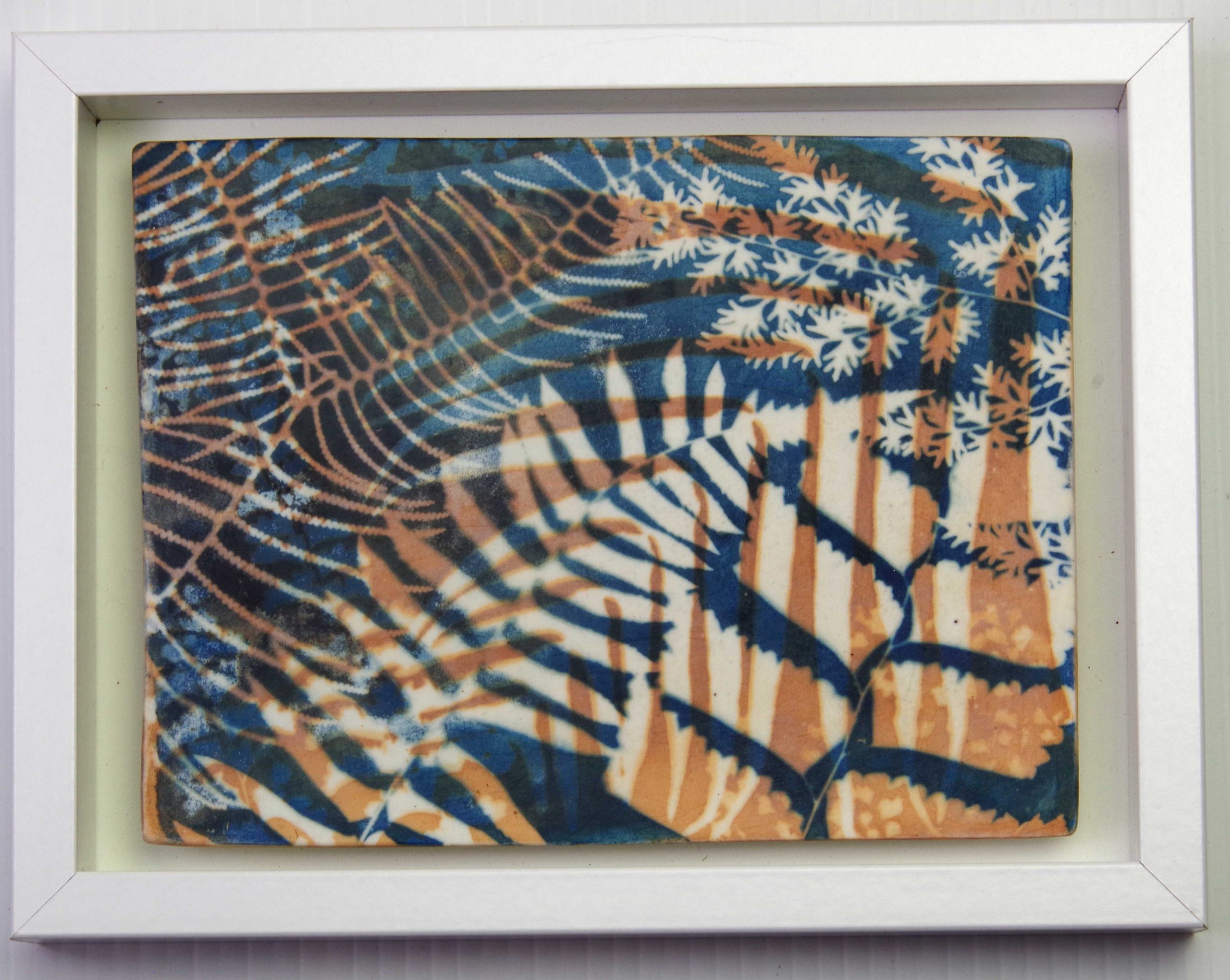 Artist Statement: “My artwork merges ceramics and cyanotype photography through extensive research and experimentation. Using ferns gathered by my mother, I have exposed images, with light and time, directly onto porcelain. This work gathers memory, material, and meaning, honouring her quiet research and my own impulse to preserve, transform, and reimagine legacy.”
