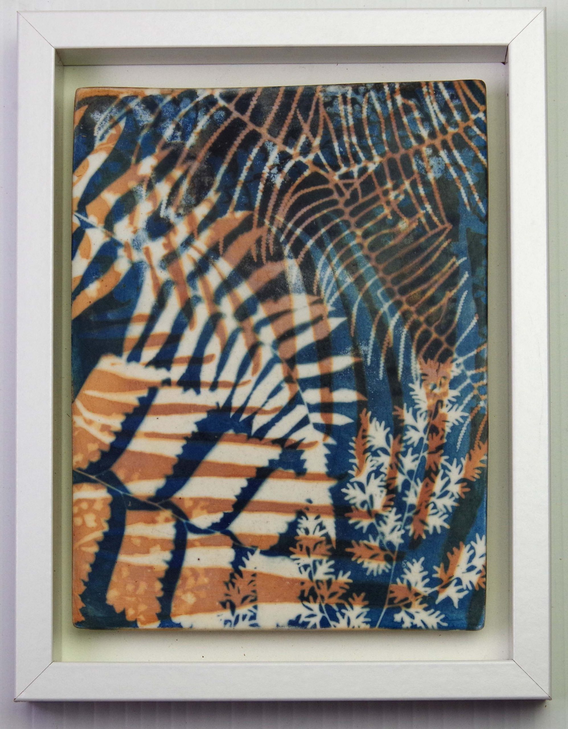 Each ceramic artwork is float mounted and framed in a white timber frame, ready for hanging. It hangs landscape format but could easily be converted to portrait format. The look good displayed in threes.